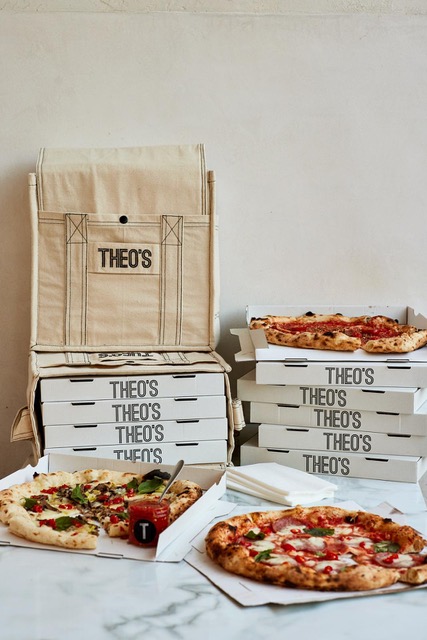 Our unique pizza bag is the perfect gift for any Theo’s fan. It is fully insulated so will keep up to four pizzas flat and hot on the way home. Made from hard-wearing canvas and contrast stitching – pick up your takeaway in style! The two handle system means it can also double up as a shoulder bag and have you covered for picnics, laptops and trips to the shops.